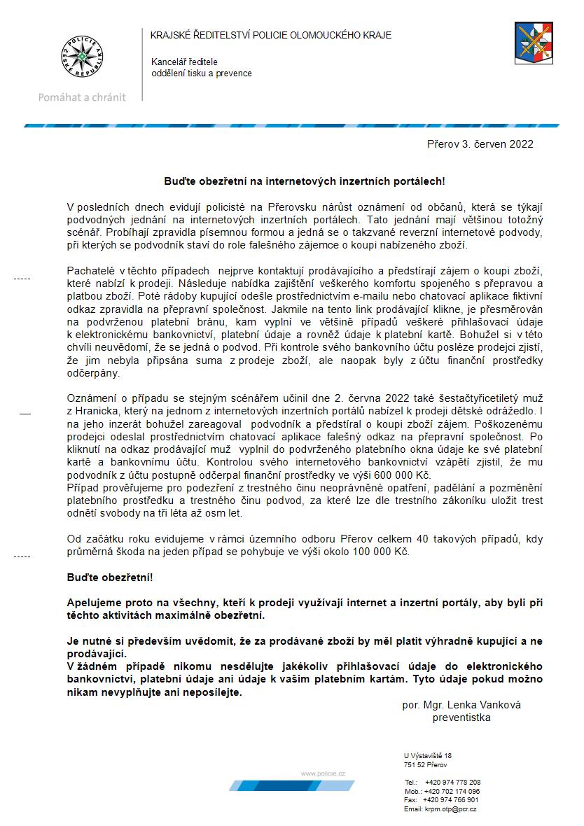 Úvod > Obec > Aktuální zprávy > Buďte obezřetní na internetových inzertních portálech !