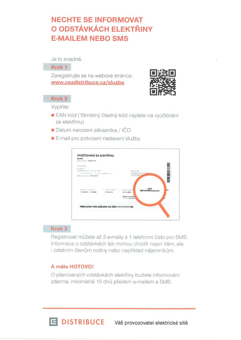 Úvod > Obec > Aktuální zprávy > Upozornění na odstávky elektřiny už jen elektronicky