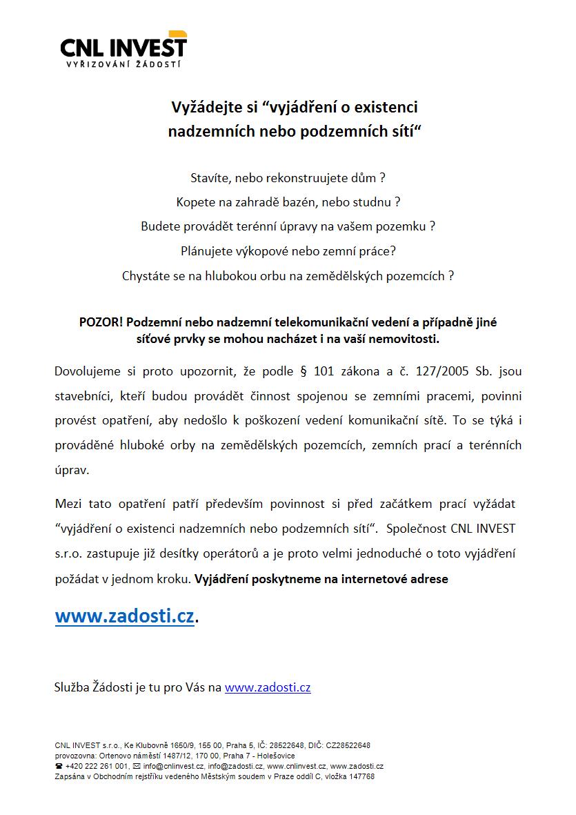 Úvod > Obec > Aktuální zprávy > Vyžádejte si "vyjádření o existenci nadzemních nebo podzemních sítí"